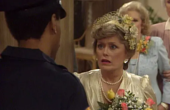 In the end, Harry is revealed to be a bigamist (by guest star Meschach Taylor as the cop, a year before the premiere of Designing Women), and Blanche takes comfort in the friendship of her roommates.