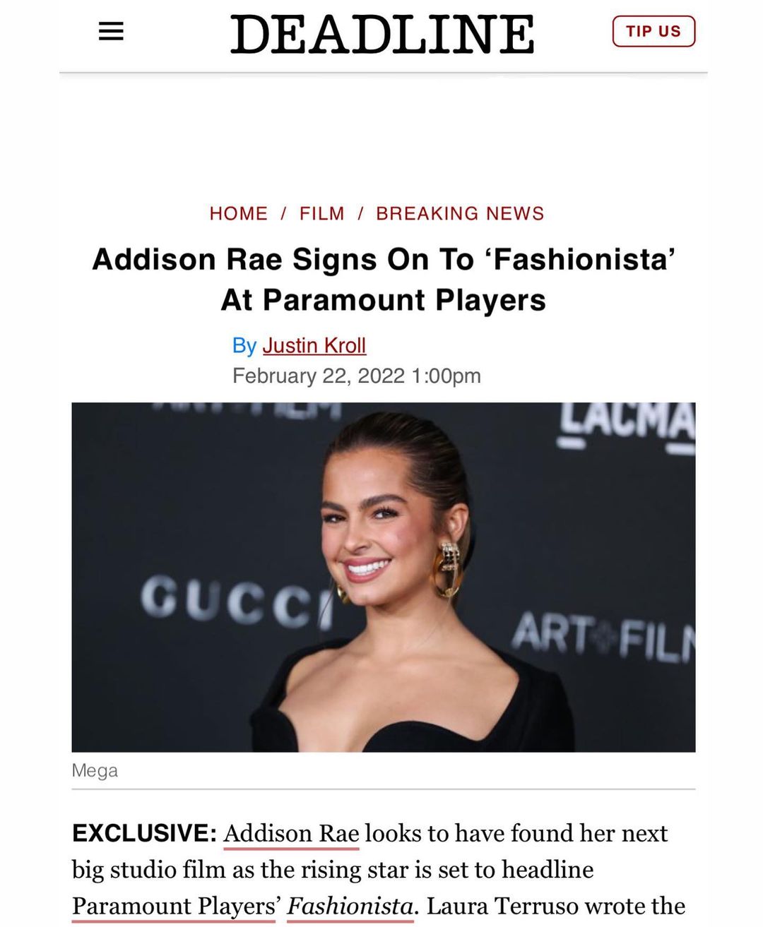 Addison Rae Music Video ObsessedOn February 2, 2022, She announced on Instagram that she had signed to join the cast of a new movie Titled Fashionista. [1]